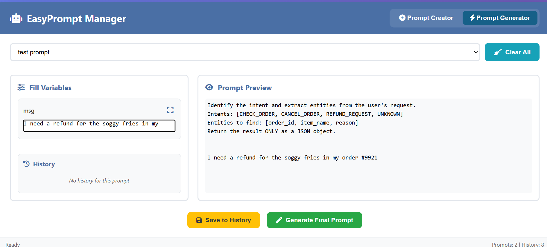 Perfect for developers, content creators, and AI enthusiasts who work with structured prompts regularly.