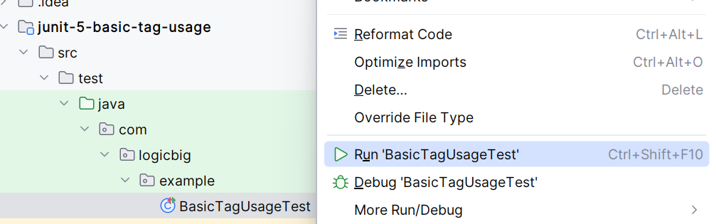 In this example we will see how to apply @Tag on methods and filter the test by tag name in Intellij.
