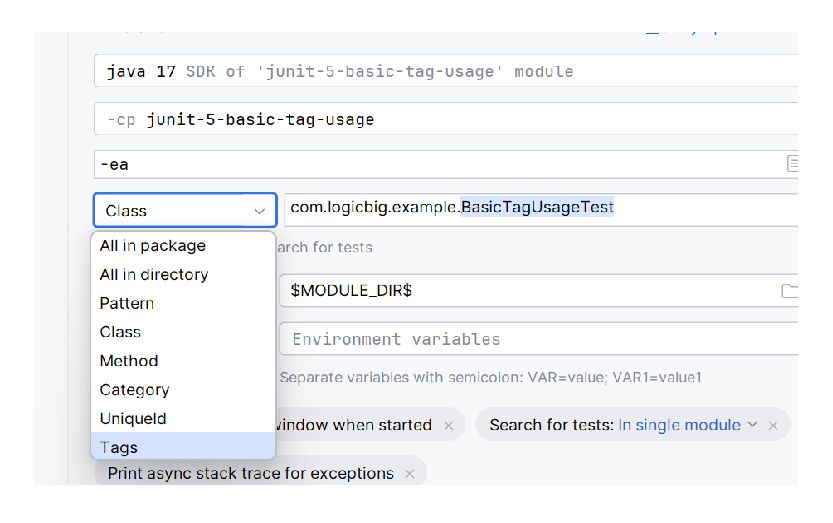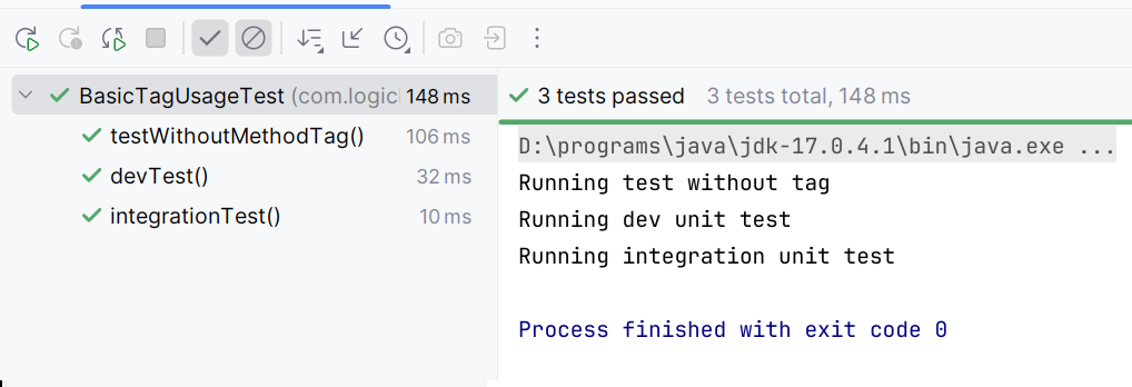 Test methods using @Tag