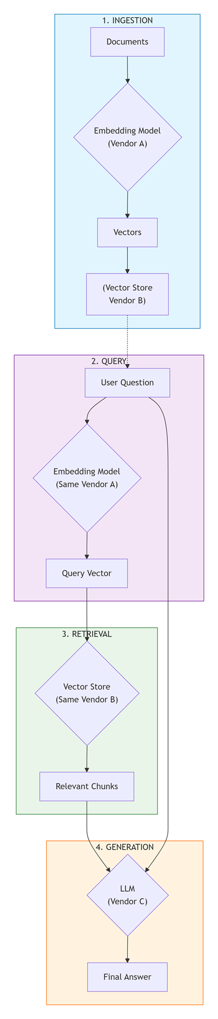 The embedding model creates a vector representation of knowledge. Recent 2026 trends include Instruction-aware embeddings where you can tell the model how to embed based on the task (e.g., "Embed this for medical retrieval").