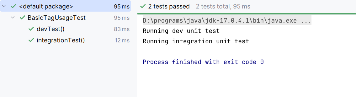As seen above @Tag can be used multiple times on the same method (or even on a class).