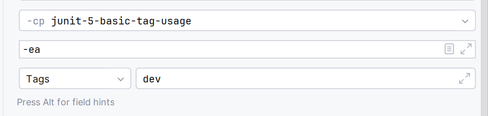 Running in Intellij with target tag names